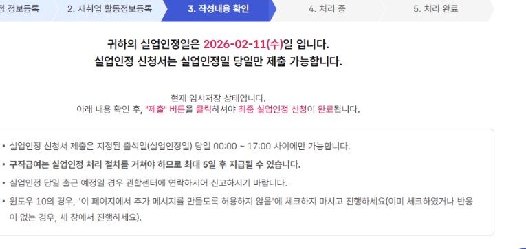 지금 신청서를 임시저장해둔 상태이고 실업급여 2차 신청일이 2월 11일인데 자세히 보니 당일00-17시까지 제출 하라고 나와있어서 그럼 새벽에 그니까 2월 10일에서 11일로 넘어갔을 시점 오전12시에 신청을 해도 되는건지 아님 오후에만 가능한건지 궁금해요