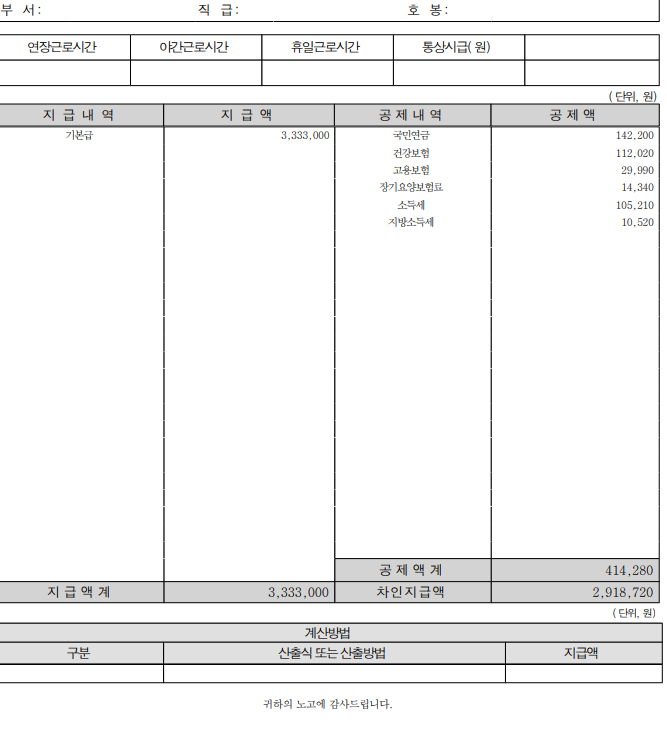 위와 같은 계약서와 급여명세서 기준으로