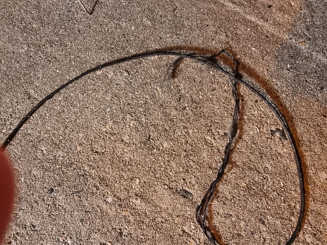 타이어에 어떤 줄이 걸인줄 알았는데 타이어에서 나온 줄이었습니다.