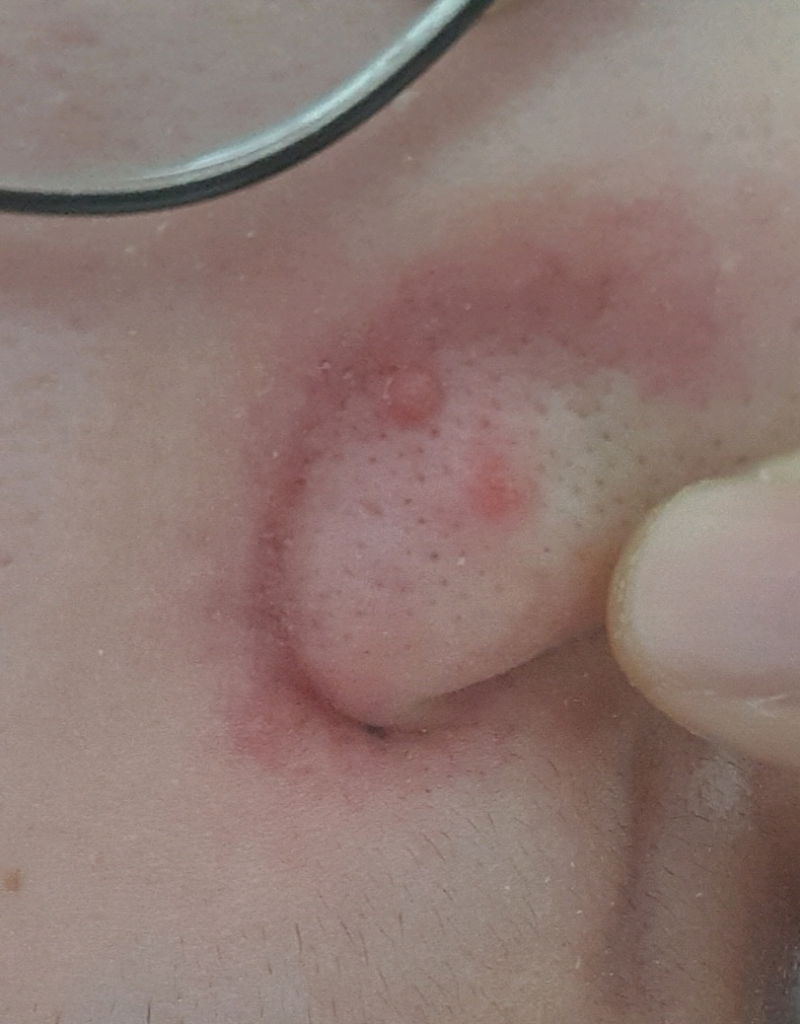 모낭의 염증 또는 종기의 가능성이 생각됩니다. 피부과 진찰을 받아보시는 것을 권유 드립니다.