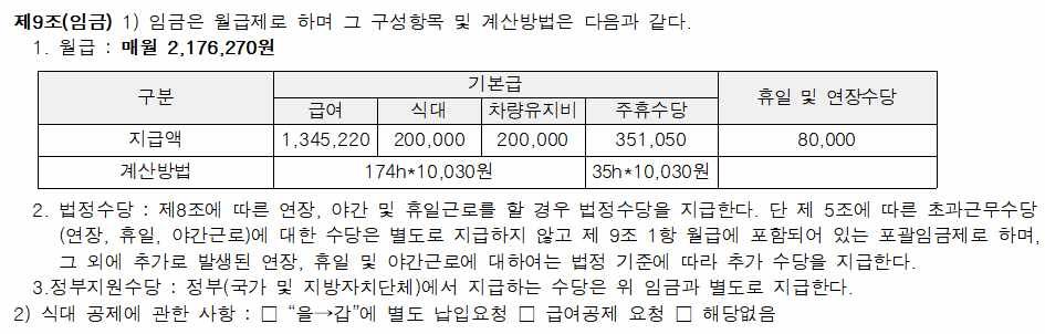 근로계약서 급여 구성 표기 적절성 여부