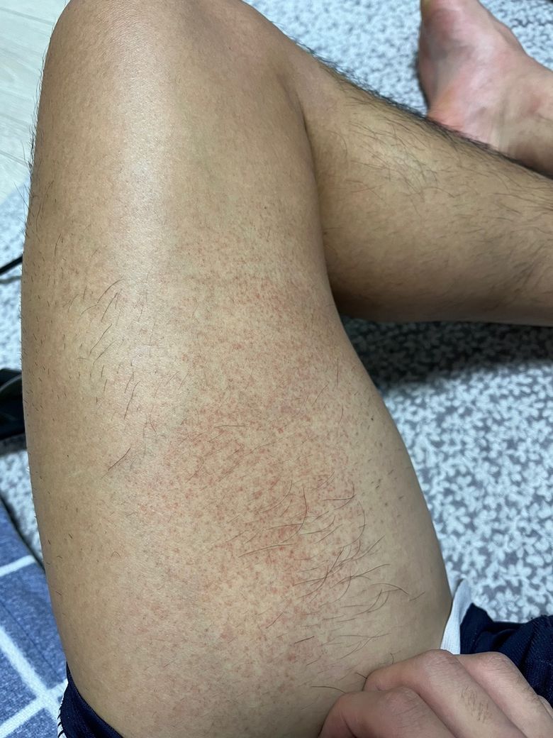 며칠 전에 팔뚝과 허벅지에 알레르기처럼 생겼는데 오늘 조금씩 번졌습니다