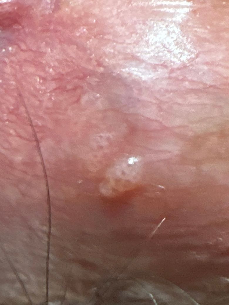 생긴지는 얼마 안지난거 같습니다. 제가 전에 곤지름을 레이저 수술한 적이 있어서 곤지름이 재발한건가 싶었는데 전에 봤던 곤지름은 검은 딱지로 되어있었어서 곤지름이 아니고 헤르페스인가 싶더라구요...뭔지 알 수 있을까요?