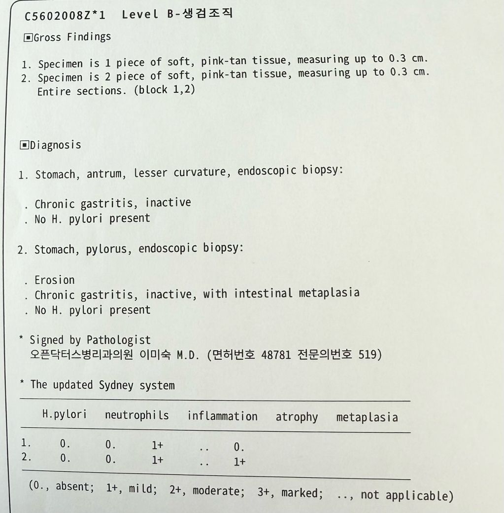 위내시경 조직 검사 결과지에서 궁금한 점