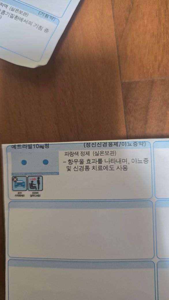 에바코 서방캡슐과 에트라빌은 몽롱함이나 집중력저하를 유발할 수 있습니다.