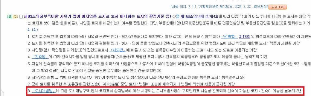 도시개발사업 이후 환지 받은 토지의 사업용 토지 적용 가능성 여부 질문