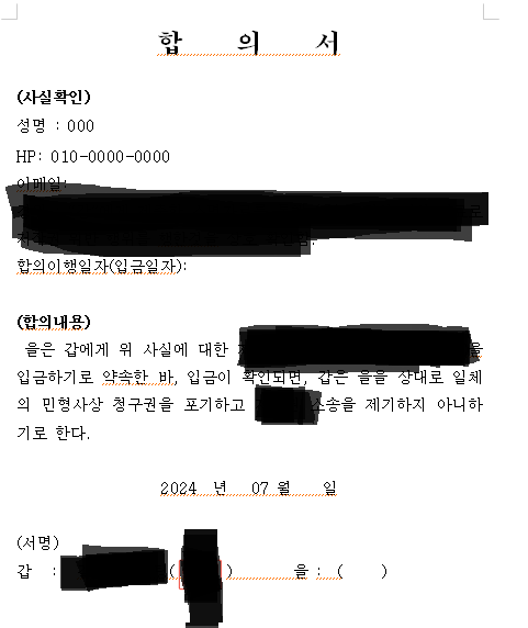 안녕하세요 피해자 측에서 합의서를 보내왔습니다.