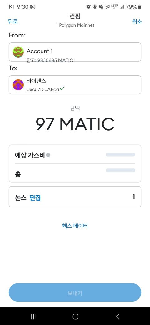 받는건 되는데 보내기 하면 화면에서 멈춥니다 폴리곤네트워크에 초록불도 안들어오고요 해결방안이있을까요?