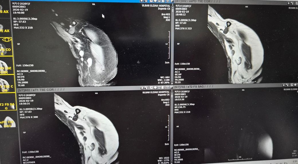 제가 2024년도 어께로 넘어진 이유로 1년10개월동안 아파서 MRI찍고 무섭다고해서