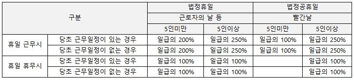 해당 시급제 직원에 대한 공휴일 및 휴일근무에 대한 수당산정 및 지급율 기준을 아래 기준을 참고로 시행하고 있는데 맞는건지요?