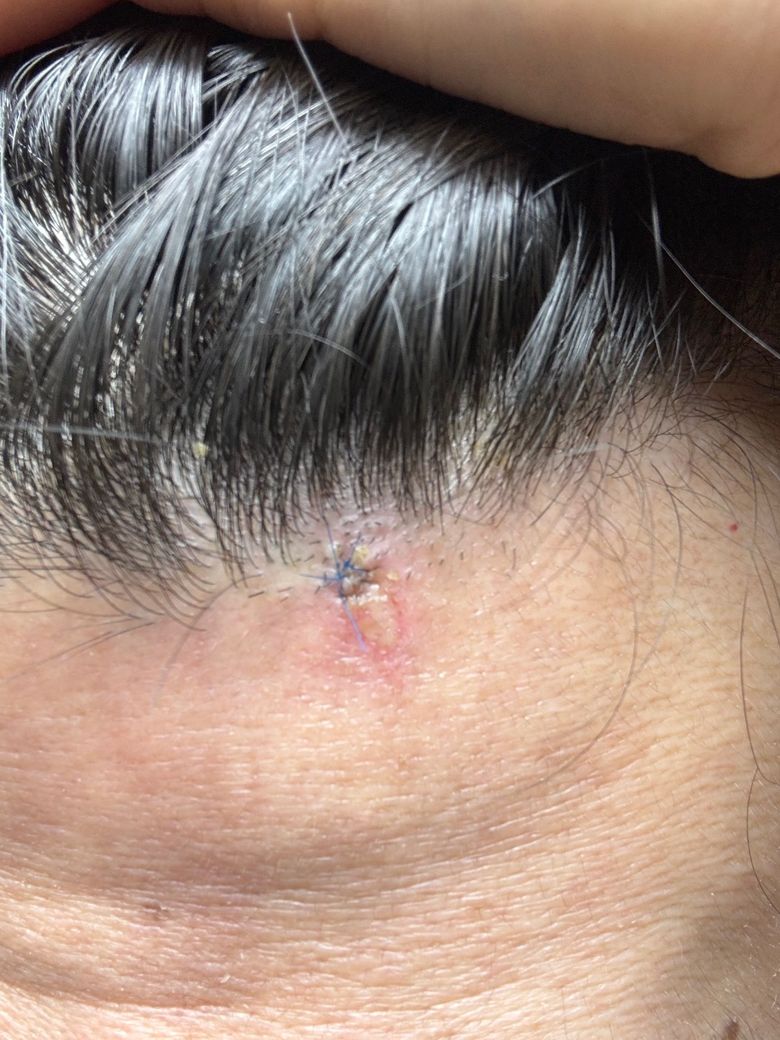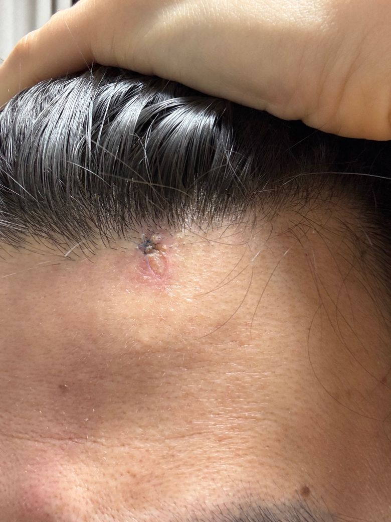 이마에 찍혀서 상처났는데 잘 아물고 있나요?