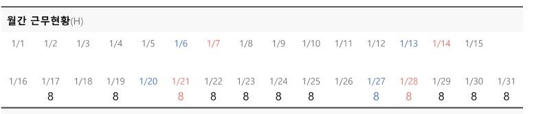 일급 230,000원이고 아래 스케줄 표대로 근무 했을 시 월급 계산은 어떻게 하나요???????????