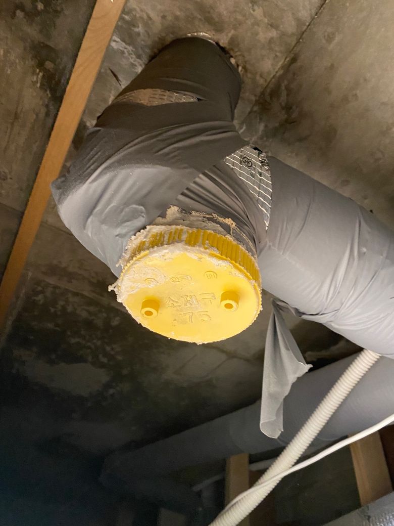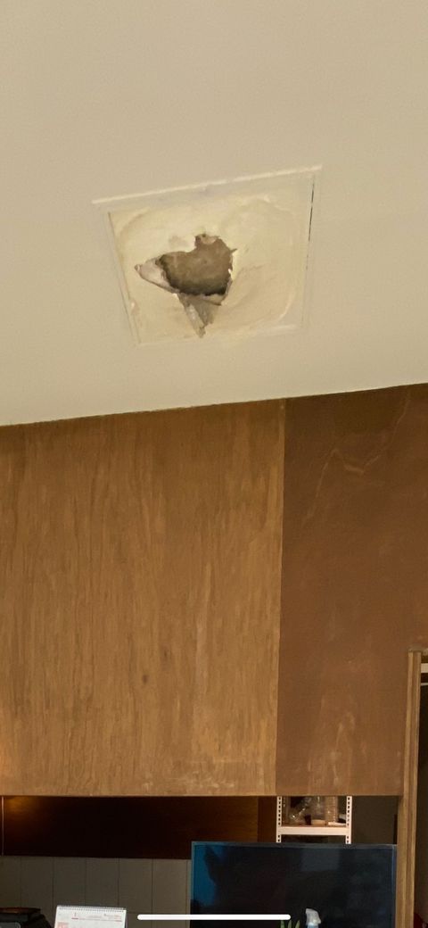 천장이 뜯긴 것처럼 되어 있어 열어보니 하얀 것들이 노란 뚜껑에 붙어 있었습니다. 부동산사장님은 결로라고 하는데 시공업체에서는 누수라고 하십니다.
