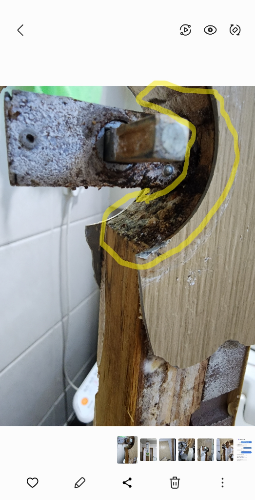 문 타공부위는 제가 입주 하기 전부터 저 상태로 녹이 많이 묻어 있고 상해있는 상태였고 기존 문고리도 녹이 슬어있어서 심을 포함해서 새로 교체 했음에도 불구하고 4달만에 저렇게 문고리가 다시 녹슬고 고장난겁니다.