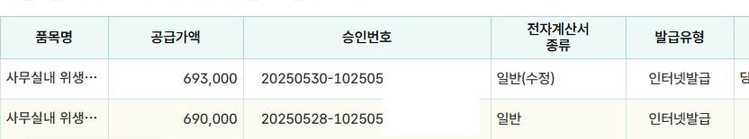 업체측에서 계산서에 공급가액이 잘못 표기해서 발행하여