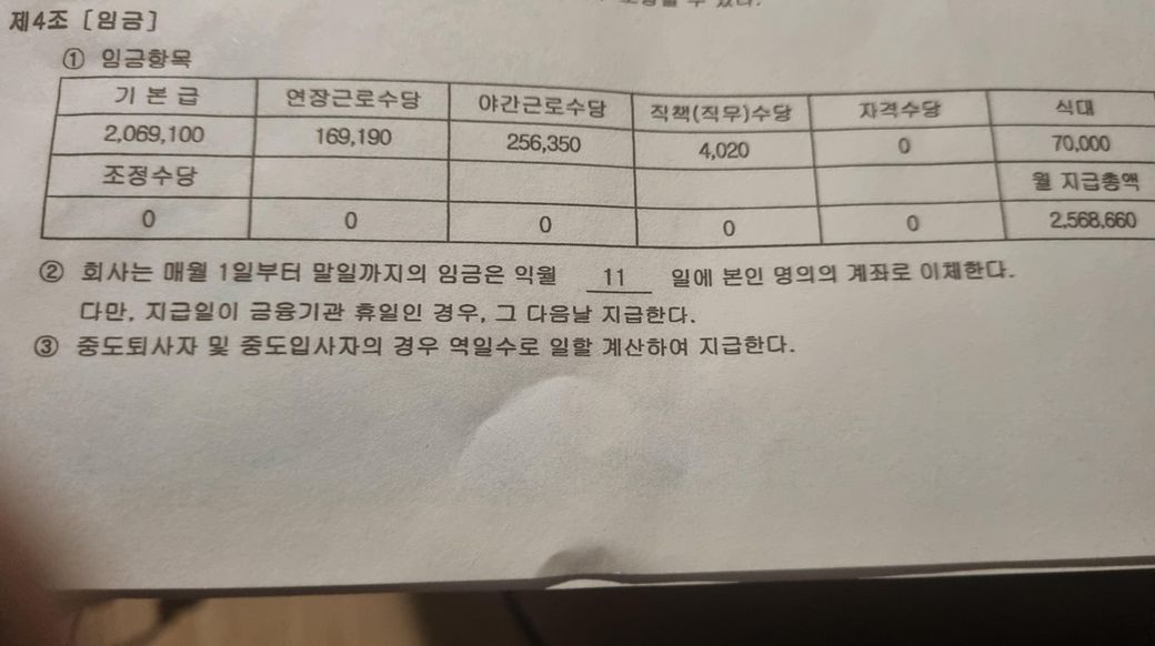 안녕하세요 제가 올해 6월 15일부터 9/30일까지 근로 계약기간을 작성하고 근로시간이"주간주간휴무야간야간휴무"이렇게 일합니다 주간이09시부터 19시까지이고 야간 19시부터 09시인데 이렇게 일하다보니 너무 안맞아서 이번주 23일이나 이번달 말까지 그만둘 생각인데 급여는 얼마 받을수있는지 궁금합니다 우선"임금항목"에"기본급"이 2,069100원"야간 근로 수당"이 256,350원"이고"연장근로수당"이 169,190원 "직책(직무)수당"4,020원입니다 만약에 6/15일부터 6/24일까지 그만두게 된다면 총 얼마받을수있는지 궁금합니다