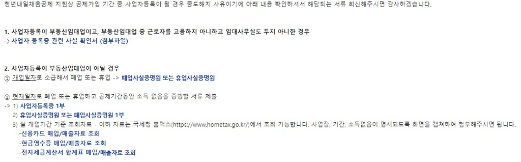 청년내일채움공제 도중 사업자를 냈을 시 매출 0 증명 어떻게 하나요?