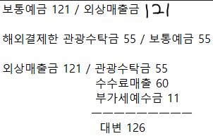 (외상매출금 121 / 관광수탁금 50 수수료매출 60 부가세예수금 11)