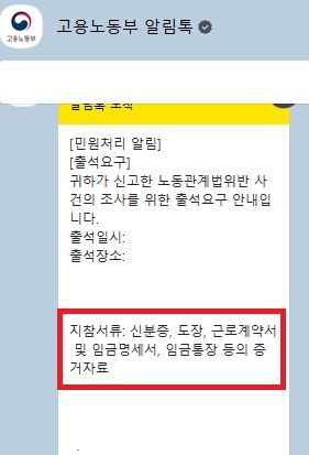 얼마 전 고용노동부 측에서 출석요구를 했습니다.
