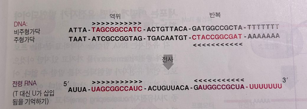 종결서열은 2개의 역반복서열 사이에 6개에 염기가 놓여있다는데 사진 보면 9개의 염기가 놓여있는데 어떻게 6개의 염기가 나오는건가요..?