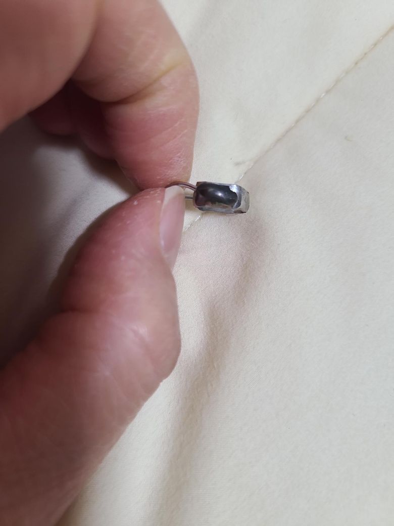 band&loop 공간유지장치로 보이며 해당 공간유지장치는 스테인레스 스틸 소재로 만들어져 녹이 잘 슬지는 않지만 오래 되어 산화나 부식 되는 경우, 저가의 금속을 섞어 사용한 경우(치과가 꼭 의도했다기 보다는 기공소가 그렇게 만들어온 것일 겁니다, 기공료는 얼마 차이 안납니다), 치과용 접착제 영향 때문입니다. 구강 내 영향이나 치아 영향은 없고 공간유지장치 기능은 잘 했을 것 같습니다.