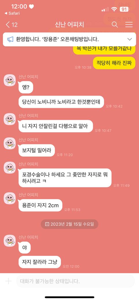 한 카카오톡 오픈채팅방에서 알게 된 유저와 갈등이 있던 와중 제 카카오톡 오픈프로필 일대일 채팅에 들어와 첨부한 사진과 같이 성적인 욕설을 하였는데 법적 처벌이 이루어질까요?