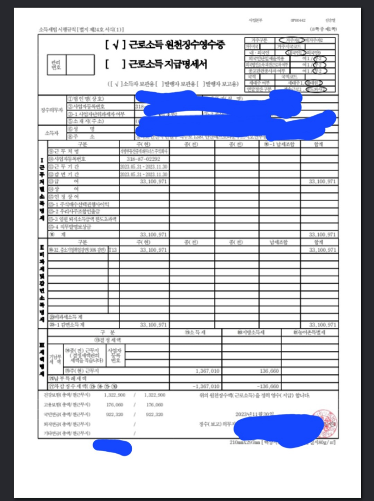 3. 중도퇴사자는 공제자료를 반영하지 못하기 때문에 추가세액이 발생할 수있고 내년 5월에 연말정산 자료를 반영하여 종합소득세 신고를 하시면 됩니다.