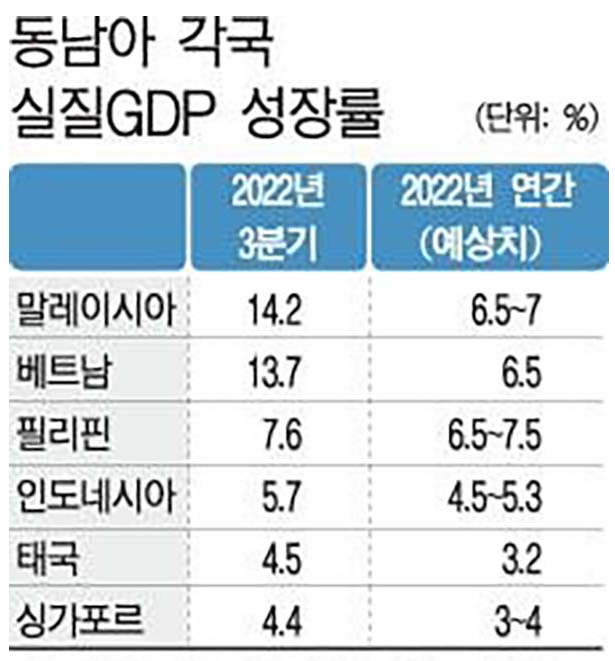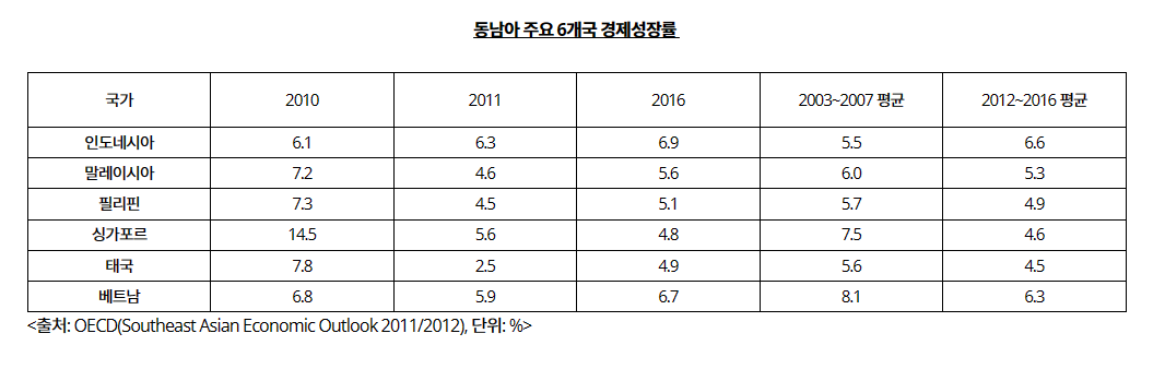 외교부 자료에 따르면 인도네시아, 말레이시아, 필리핀, 싱가포르, 태국, 베트남이 성장률이 높았으며,