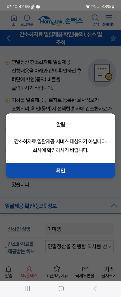 간소화서비스 대상아니라 회사문의하라는데