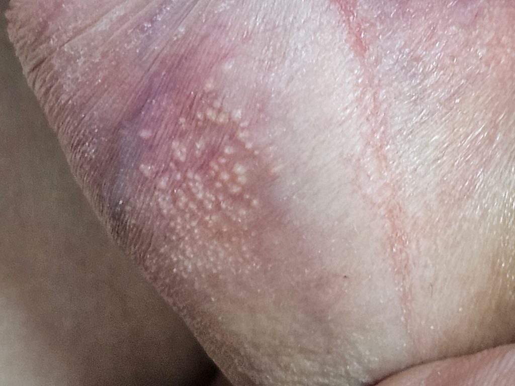 포다이스반이 추정되는데 가까운 비뇨의학과에서 확인해보시기 바랍니다. 만약 그렇다면 걱정할만한 병변은 아니겠습니다.