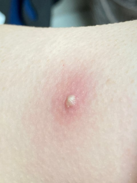 진드기 등에 물렸을 가능성 또한 있기 때문에 가까운 피부과 및 외과에 내원하시어 항생제 처방 및 상처관리를 받으시는 것을 추천드립니다.