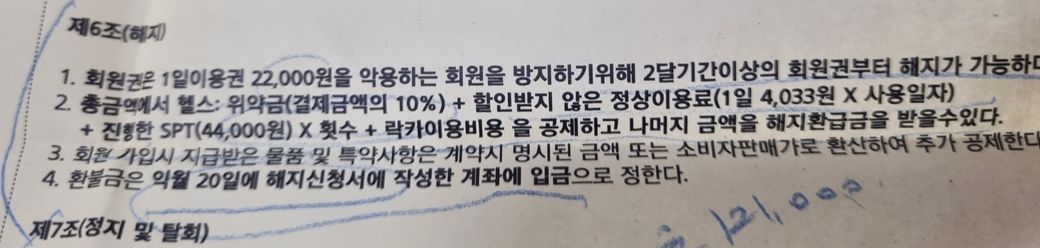 써 있는 대로 계산해 보자면 위약금 10%인 31,900+ 10일~23일 사용료 56,500원+PT1회 44,000원 하면 대락 132,400원이니까 대략 186,600원 같습니다