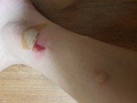 작은 상처가 난 이후 지속되는 국소적인 통증과 열감 발적은 2차감염의 징후일 수 있습니다. 이 경우 연고등으로 치료가 힘들고 경구항생제 복용이 필요 할 수 있습니다. 시간이 지나 방치되어 열이 나는 경우 전신감염으로 진행 할 가능성이 있고 입원 후 항생제 주사 치료가 필요합니다.