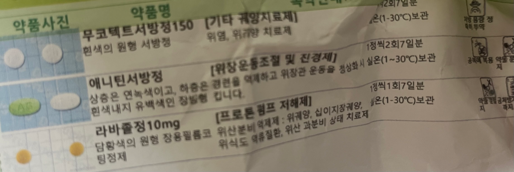 모두 위장장애가 없는 약들이며 평소에 커피나 탄산음료, 밀가루도 피하면 좋습니다.