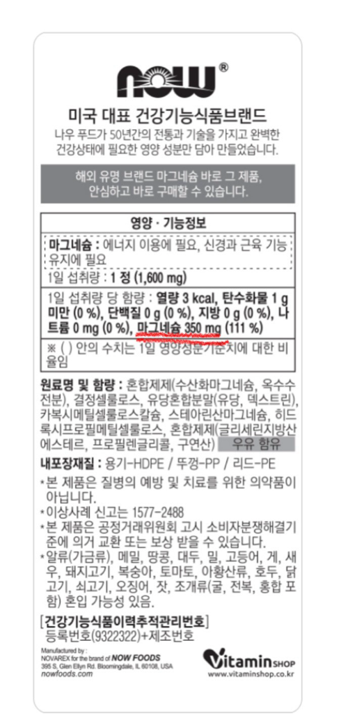 제가 먹고있는 마그네슘은 나우푸드꺼 입니다(사진첨부)