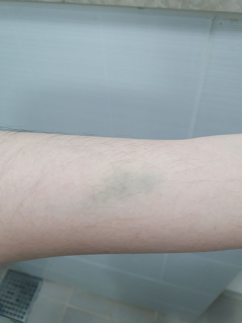 2회차 침 맞고 집에 와서 보니깐 팔뚝 쪽에 침놨던 자리 핏줄이 터졌네요