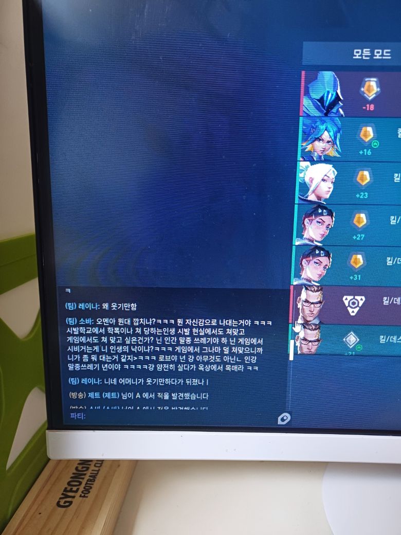 "오멘 지금 풀발기 상태 건들면 안 됨, 니 어매따라 뒤지면 좋을 듯, 태어날 때부터 뒤지지 않았을까, 니 엄마가 니탓 하겠다, 오멘 이걸 못 잡네 병, 오멘님 어매 뒤졌으면 말 좀, 병신아 적당히 나대고, 니 할머니 내가 총살, 니엄마 꼭지 ㅈㄴ씹어먹을까"