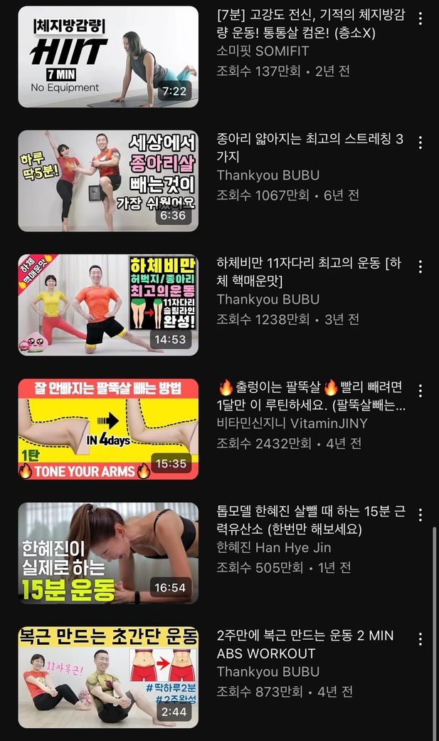 •홈트 최소 3개씩/많이 하면 6개씩(밑에 사진 있는데 봐주세요)