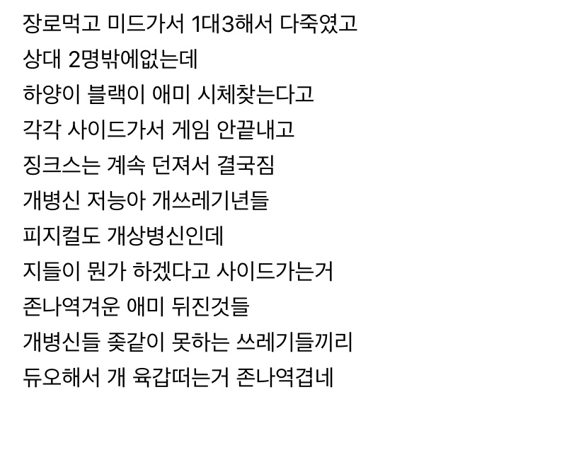 위 사진과 같이 다른 사람들이 게임을 못한다 싶으면 카페에 온갖 욕설들이 써놓습니다. 평소 행실을 찾았는데 처벌이