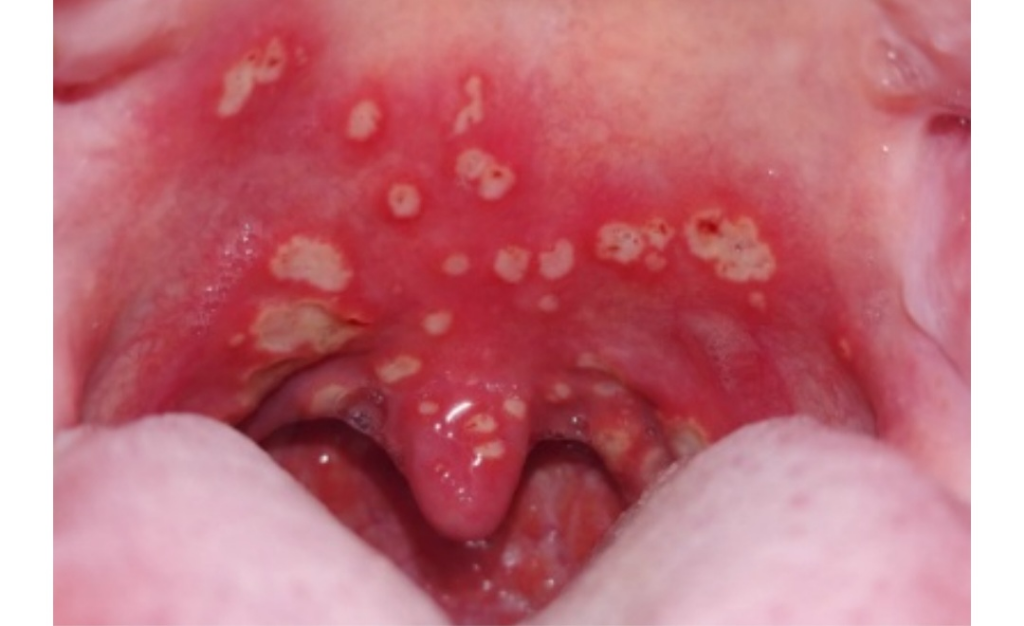 헤르페스성 구내염은 다발성 수포가 잇몸, 구개, 뺨, 혀, 입술 경계 등에 나타나며 열이 동반되는 경우가 있습니다. 열은 보통 수포가 나타나기 몇일 전 나타나며 수포가 터지면 궤양이 발생할 수 있어 2 차감염을 주의해야 합니다. 병의 경과는 약 7일에서 10일 정도 진행됩니다.