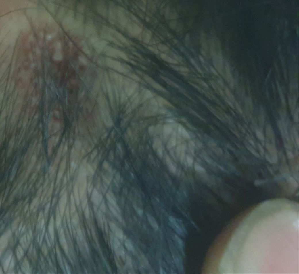 질문하신 내용에 대하여 아래와 같이 답변 드립니다.글로만 보았을때 확진하기 어렵습니다. 다만, 지루성두피염의 증상이 일부 보입니다.