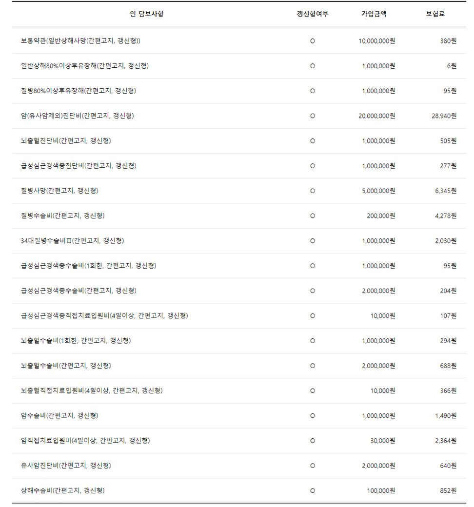 괜찮게 설계는 되었고 보험료도 적당한 것 같은데 한가지 아쉬운 점은