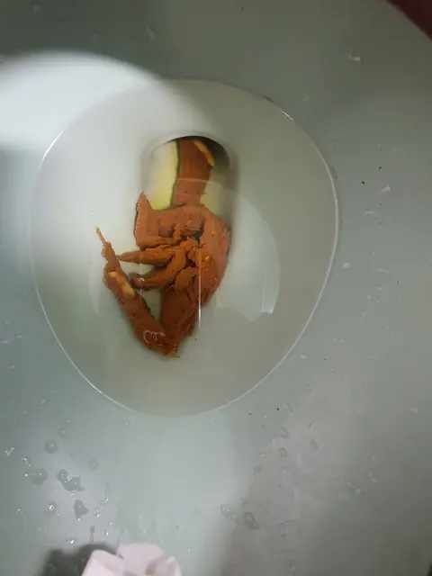 대변에 저 밑에 있는 흰색 큰 덩어리는 뭔가요..? 저도 맨날 뭘먹든 저 흰색 덩어리가 변에 박혀있어서요! 다른 날에도 변을 보면 항상 저런 흰색 큰 덩어리가 있습니다.. 뭔가요..?