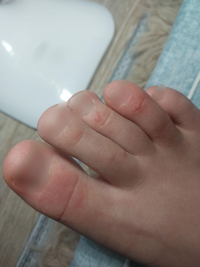 발가락이 붉게 발진이 올라오는데 습진성인것 같아보입니다.놔두면 심해질수 있으니 습진 아토피연고 발라보세요