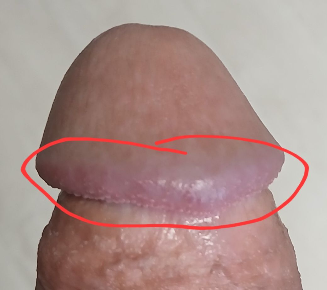 해당 증상은 진주양구진(pearly penile papule)이라고 하는 정상구조입니다.