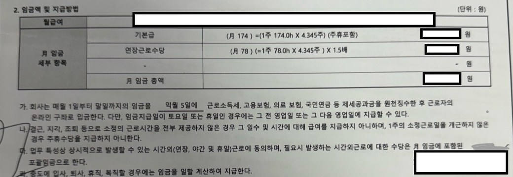 계약서에 별도 휴일근로수당이 잡혀 있지 않은 경우이므로 근로자의 날이나 법정공휴일 근무시 휴일근로에 대한