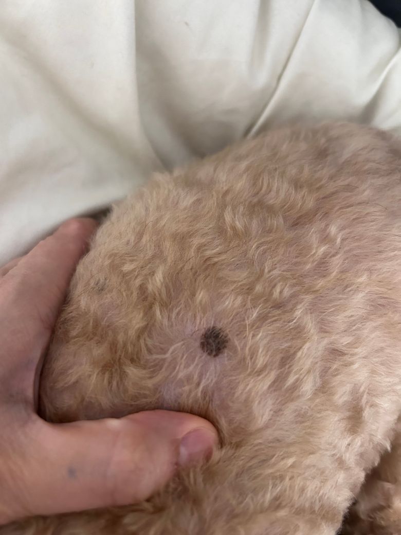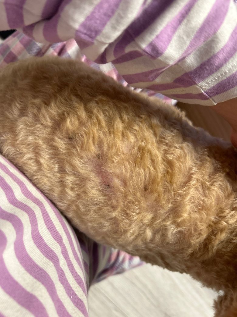 갈색 푸들에서 자주 보이는 반점일 가능성이 높아 보입니다. 특히 주변으로 염증양상이 관찰되지 않아 정상으로 판단되나 의심간다면 주치의의 육안 확인을 받아 보시는걸 추천합니다.