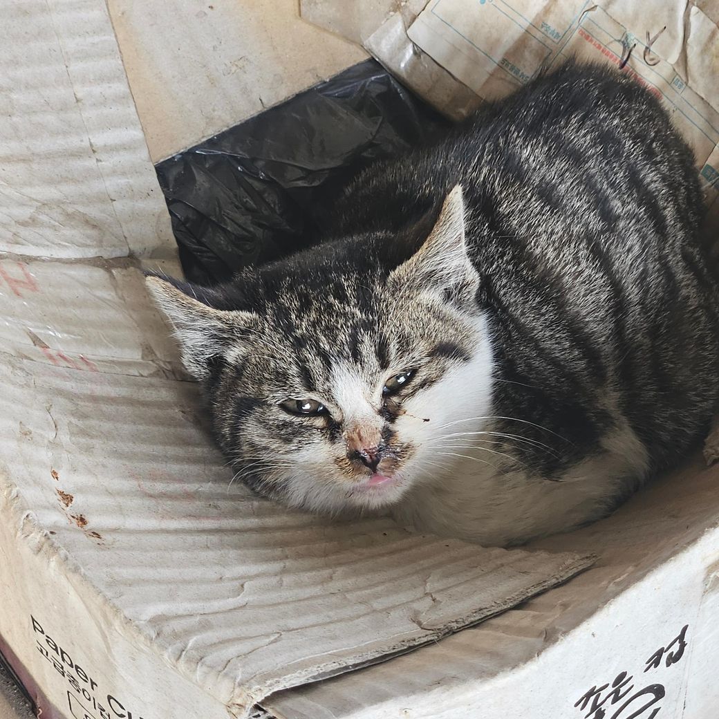 집근처에 아기 길고양이인데 오늘 보니까 상태가 안좋네요. 눈도 잘 못뜨고 콧물도 나는거 같아요. 혹시 어떤지 봐주실수있나요??