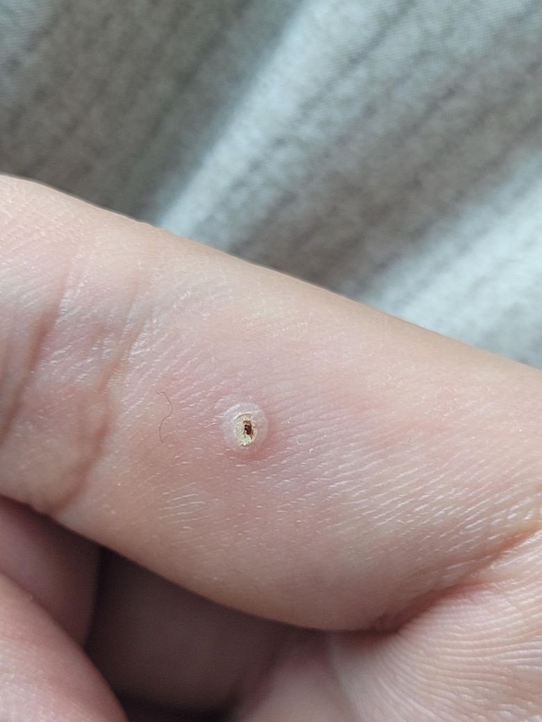 두개는 딱지가 떨어졌는데 중심부에 피딱지?빨간점이 남았습니다 이거 사마귀가 남아있는건가요 아직 덜 아물어서 보이는건가요?