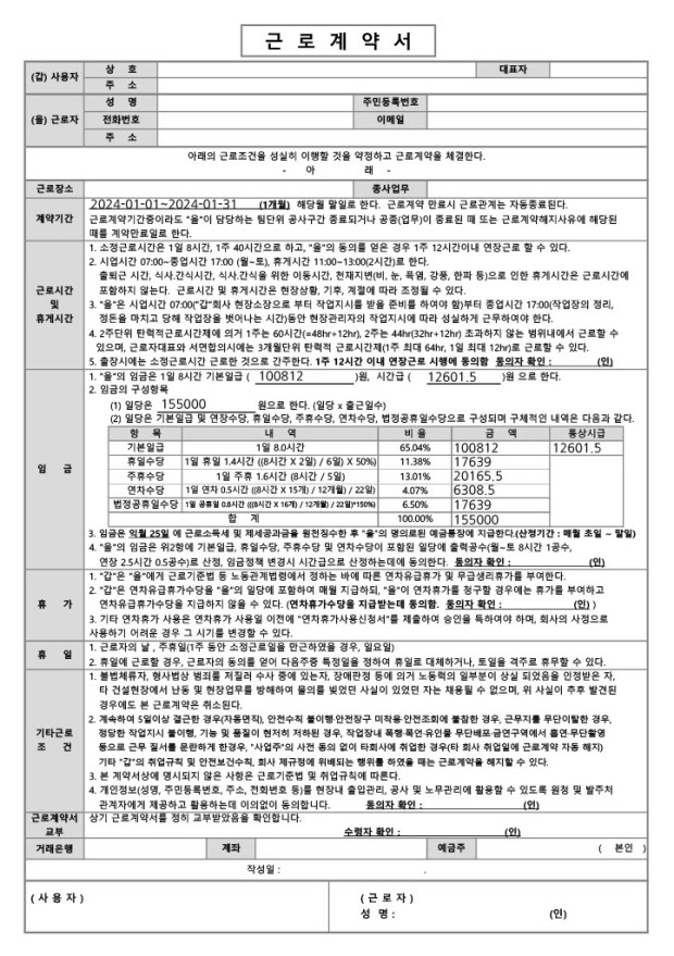 근로계약서 전문입니다.